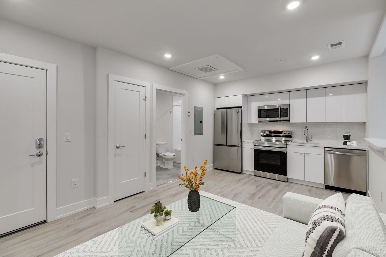 Designed with convenience in mind, each unit features an in-unit washer/dryer, while the building offers controlled access, a fitness center, and a pet-friendly atmosphere.